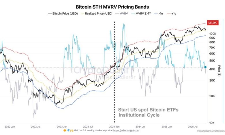 شرایط کنونی همچنین با کوریدور قیمتگذاری استیاچ-امویآروی (STH-MVRV Pricing Corridor) که سودآوری دارندگان کوتاهمدت (Short-Term Holders) را ردیابی میکند، هماهنگ است. مرز بالایی این محدوده نزدیک به ۱۳۰,۰۰۰ دلار قرار دارد، سطحی که در گذشته، برداشت سود (Profit-Taking) در آن تشدید شده است.