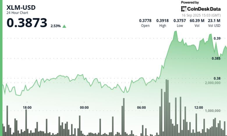 توکن XLM شبکه استلار در طول ۲۳ ساعت گذشته نوسانات شدیدی را تجربه کرد و در محدوده معاملاتی فشرده اما فعال بین ۰.۳۸ تا ۰.۳۹ دلار در نوسان بود. قابل توجهترین حرکت صعودی توکن بین ساعات ۰۸:۰۰ تا ۰۹:۰۰ به وقت UTC اتفاق افتاد، جایی که قیمت XLM با حجم معاملاتی قابل توجه ۷۰ میلیون توکن—بیش از سه برابر میانگین حجم ۲۴ ساعته—از ۰.۳۸ به ۰.۳۹ دلار صعود کرد. شتاب معاملاتی در ساعت بعدی نیز ادامه یافت و حجم معاملات بالای ۶۰ میلیون واحد باقی ماند قبل از آنکه قیمت در نزدیکی مرز بالایی محدوده تثبیت شود.