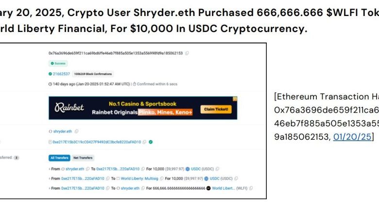 تحقیق Accountable.US الگوهای تراکنش «نگرانکننده»ای را آشکار کرد که خریداران توکن ورلد لیبرتی فایننشال را به adversaries اصلی آمریکا متصل میکند. در ۲۰ ژانویه ۲۰۲۵، کاربر «Shryder.eth» تعداد ۶۶۶٬۶۶۶ توکن WLFI را به مبلغ ۱۰٬۰۰۰ دلار خریداری کرد و بعداً در طول یک کمپین airdrop در ماه ژوئن، ۴۷ دلار توکن تبلیغاتی اضافی دریافت کرد.