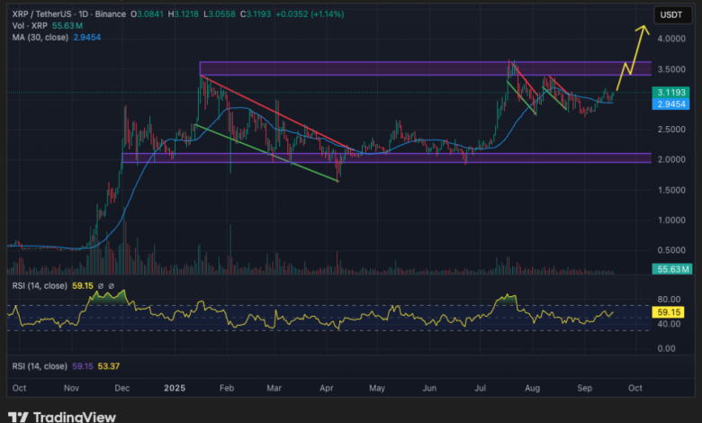 در طول دوازده ماه گذشته، XRP ۴۴۰ درصد صعود کرده است که از سود ۹۵ درصدی بیتکوین پیشی گرفته است. افزایش قیمت در اواسط ژوئیه، این کوین را در نزدیکی مرز ۳ دلار نگه داشته است، سطحی که علیرغم نوسانات گستردهتر بازار، مقاومت خود را نشان داده است.