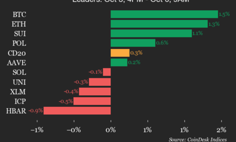 بیت‌کوین (BTC) با رشد ۱.۵ درصدی و اتریوم (ETH) با رشد ۱.۳ درصدی در صدر جدول بهترین عملکردها قرار دارند.