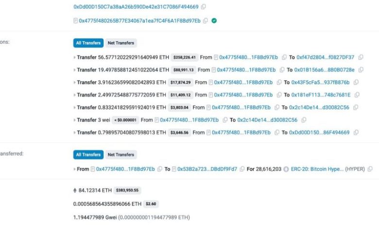 از ۲۹ سپتامبر (۱۱ روز پیش در زمان نگارش)، بیتکوین هایپر حدود ۴.۳ میلیون دلار سرمایه جدید جذب کرده است. بخش عمدهای از این مبلغ از یک کیف پول نهنگ منفرد تأمین شد که ۶۲.۲ میلیون توکن هایپر به ارزش حدود ۸۳۳,۰۰۰ دلار در آن زمان – نزدیک به ۱۹٪ از کل مبلغ جمعآوری شده در آن بازه کوتاه – خریداری کرد.