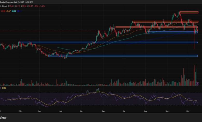 تحلیل HYPE توسط چت‌جی‌پی‌تی نشان می‌دهد که HYPE در حال آزمایش شکست کلیدی سطح حمایت ۳۸.۱۱ دلار پس از شکست در ۴۰.۰۰ دلار است.