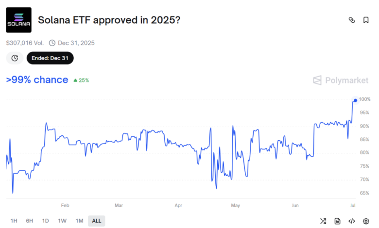 اعتماد بازار به رشد SOL به سمت 300 دلار اکنون بالا است، با Polymarket که احتمال 99٪ را به نفع تأیید ETF سولانا قبل از پایان سال 2025 نشان می‌دهد.