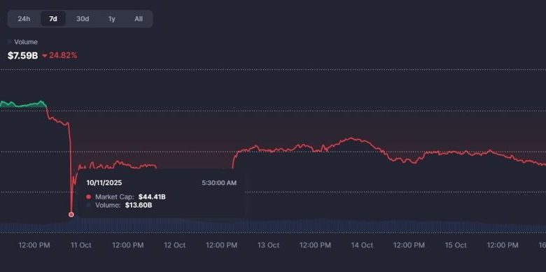 فروش گسترده پس از سقوط شدید بازار در روز جمعه رخ داد که بیش از ۱۹ میلیارد دلار از پوزیشن های لورج شده در سراسر کریپتو را پس از اعلام برنامه های رئیس جمهور آمریکا، دونالد ترامپ، برای اعمال تعرفه ۱۰۰٪ بر واردات چینی از بین برد.
