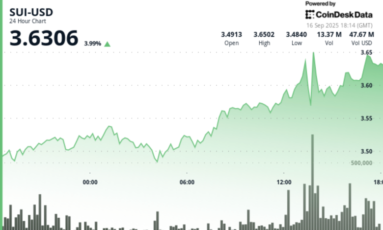 حرکت قیمت این توکن از ۳.۵۰۹ دلار به ۳.۶۲۲ دلار، نشاندهنده سودی معادل ۳.۲۲ درصد بود که در محدودهای به وسعت ۰.۱۸۳ دلار معامله شد. در مقابل، شاخص CoinDesk 20 در همین دوره تنها ۱ درصد رشد کرد. قیمت فعلی SUI در زمان نگارش این مطلب ۳.۶۳ دلار است.