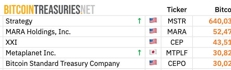 شرکت متاپلنت (Metaplanet) ژاپن با خرید ۵,۲۶۸ بیتکوین به ارزش ۶۲۳ میلیون دلار، مجموع داراییهای خود را به ۳۰,۸۲۳ بیتکوین رساند که با قیمت متوسط خرید ۱۰۸,۰۳۸ دلار برای هر سکه، ارزش تقریبی آن به حدود ۳.۳ میلیارد دلار میرسد. این شرکت حاضر در بورس توکیو اکنون به عنوان چهارمین دارنده بزرگ شرکتی بیتکوین در سطح جهان شناخته میشود که هدف مالی سال ۲۰۲۵ خود برای رسیدن به ۳۰,۰۰۰ بیتکوین را زودتر از برنامه به دست آورده است.