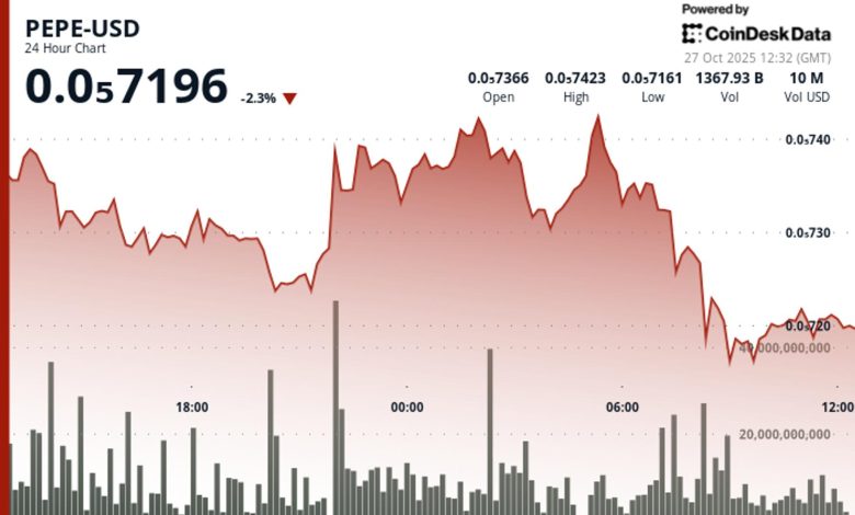 پپه تقریباً ۲ درصد افت کرد زیرا میمکوینها با مشکل مواجه شدند، بازگشت اواخر جلسه نشان از حمایت خریداران دارد