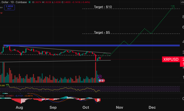 هفتههای گذشته برای XRP بسیار ناخوشایند بوده است، بهطوری که از ۳.۰۹ دلار در ابتدای اکتبر به ۲.۴۷ دلار امروز کاهش یافته است. این کوین در ۲۴ ساعت ۶٪، در یک هفته ۱۷٪ و در یک ماه ۲۰٪ کاهش داشته، اگرچه در طول یک سال افزایش بسیار قابل قبول ۳۶۰٪ را حفظ کرده است. هیچ شکی نیست که XRP اخیراً تحت فشار شدید قرار گرفته است، اما این مسئله بهطور قابل بحثی آن را برای جهشی حتی بزرگتر در آیندهای نهچندان دور آماده میکند.