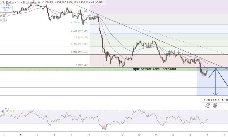 معاملهگران ممکن است به دنبال تنظیمات معاملاتی short (short setups) below ۱۰۹,۵۰۰ دلار با هدف ۱۰۷,۳۰۰ دلار باشند، در حالی که پوزیشنهای long در صورت صعود بالای ۱۱۲,۷۰۰ دلار بهتر قرار میگیرند. با وجود ضعف کوتاهمد