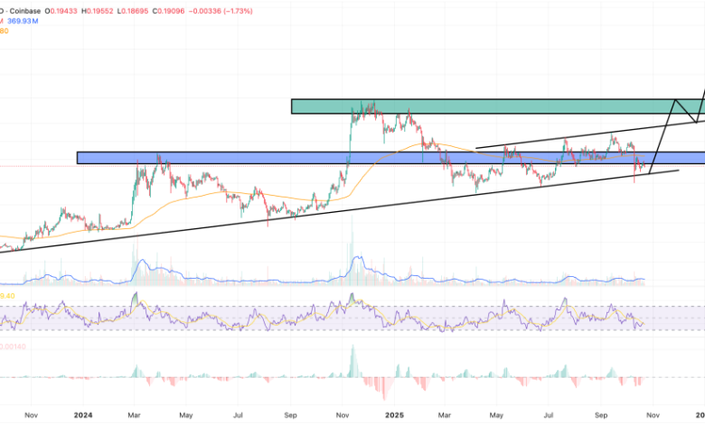 به نظر میرسد حمایت قوی حول سطح ۰.۱۷ و ۰.۱۹ دلار وجود دارد، و این توکن ممکن است وارد فاز انباشت (Accumulation) شده باشد زیرا بازار در انتظار محرک بعدی است.
