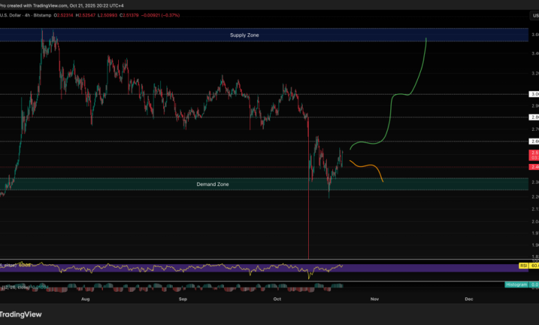 قیمت XRP پس از سقوط اخیر بازار، همچنان بالای منطقه تقاضای قوی حول ۲.۳۰ دلار مقاومت کرده است. سطح کلیدی بعدی برای مشاهده ۲.۶۰ دلار است؛ اگر قیمت از این سطح عبور کند و بالای آن تثبیت شود، به راحتی میتواند به سمت ۲.۸۰ دلار و شاید حتی ۳.۰۰ دلار حرکت کند، جایی که نقدینگی زیادی قرار دارد.