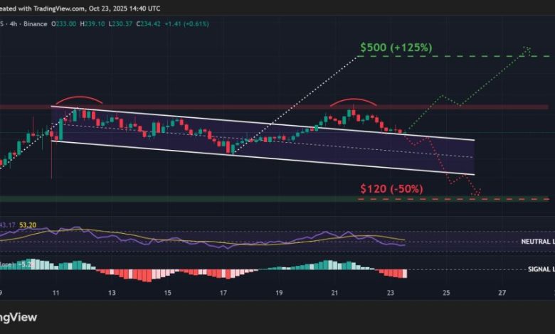 در صورت تحقق کامل، این الگوی بازگشتی کلاسیک (Classic Reversal Pattern) میتواند باعث کاهش ۵۰٪ به سمت کف اکتبر این آلتکوین در نزدیکی ۱۲۰ دلار شود و بخش عمدهای از سودهای بازار گاوی را از بین ببرد.
