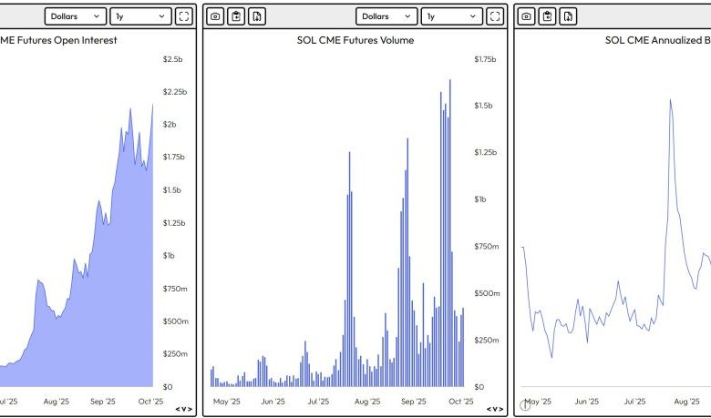 دادههای Velo.data نشان میدهد موقعیت باز (Open Interest) فیوچرز سولانا در CME به رکورد ۲.۱۶ میلیارد دلار رسیده است، در حالی که قیمت ۲۳٪ از ۱۹۵ دلار به ۲۳۵ دلار بازگشته است. این موقعیتگیری نهادی، پیش از تصمیم ۱۰ اکتبر کمیسیون بورس و اوراق بهادار آمریکا (SEC) در مورد صندوق قابل معامله در بورس (ETF) مبتنی بر سولانا انجام شده است. زمانبندی نشان میدهد حرفهایها خود را برای افزایش نوسانات آماده میکنند.
