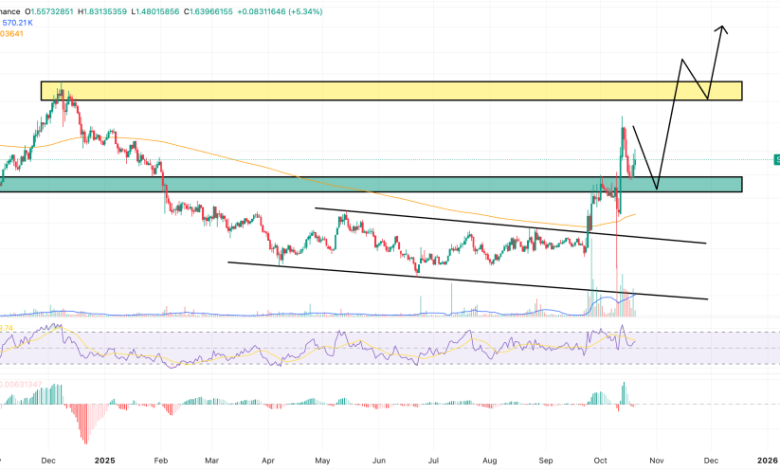 اکنون، حرکت به سمت 2 دلار اجتناب‌ناپذیر به نظر می‌رسد و حجم‌های معاملاتی قوی امروز، بازگشت از این ناحیه را تأیید می‌کنند. این می‌تواند حرکت به سطوح بالاتر را در هفته‌های آینده کلید بزند.