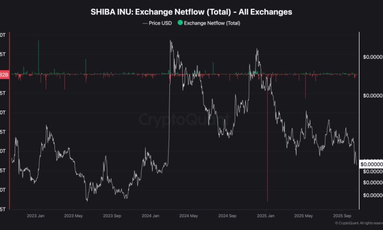 این جابجایی نشان می‌دهد بسیاری از سرمایه‌گذاران در حال خرید در کف (Buying the Dip) و انتخاب استراتژی نگهداری هستند، نه فروش از سر وحشت. اگرچه SHIB در ۲۴ ساعت گذشته ۹٪ کاهش یافته، اما این کاهش عرضه در صرافی‌ها ممکن است به کاهش بخشی از فشار فروش کمک کرده باشد.