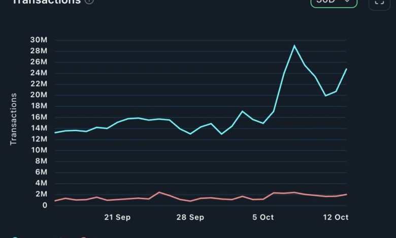 BNB در معاملات روز دوشنبه به بالاترین حد تاریخی خود در ۱,۳۷۰ دلار دست یافت که بر بنیادهای قوی زیرساختی آن تأکید دارد. بر اساس دادههای مجله کوینومیست، شبکه BNB در ۳۰ روز گذشته بیش از ۵۰۰ میلیون تراکنش پردازش کرده که افزایش ۱۵۱ درصدی ماهانه را نشان میدهد.
