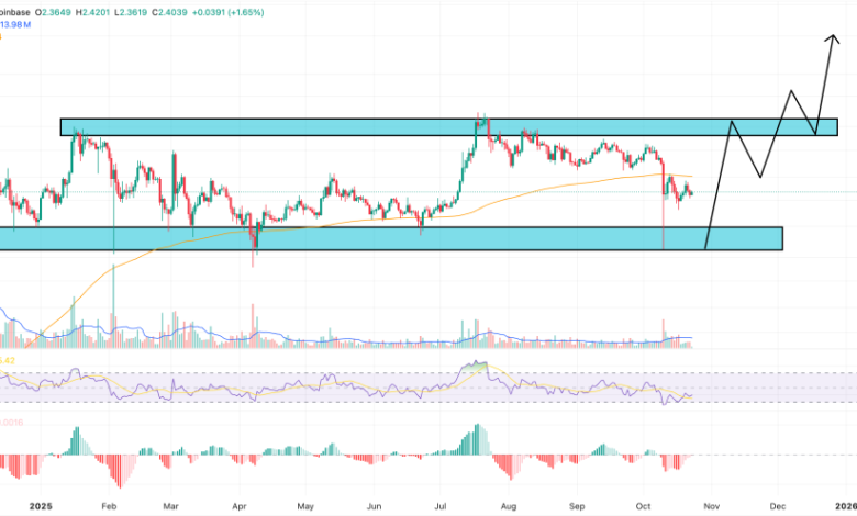 حمایت کلیدی ۱.۸ دلاری کاهش قیمت XRP در ۱۰ اکتبر را مهار کرد. این بازگشت نشاندهنده تقاضای قابلتوجه برای توکن در قیمتهای پایین است و یک کف احتمالی برای کاهشهای بعدی ایجاد کرده است. قیمت به سرعت بهبود یافته و هماکنون بالای علامت ۲.۴ دلار در نوسان است.