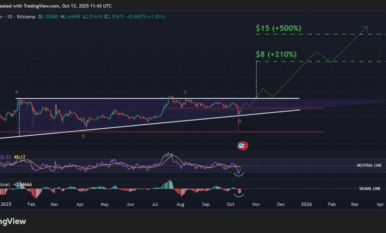 با نگاهی به آینده دورتر، گسترش دسترسی به بازارهای ترادفای (TradFi) ایالات متحده و کاهش نرخ بهره توسط فدرال رزرو برای تقویت احساسات ریسکپذیری (Risk-On Sentiment) میتواند XRP را به سمت ۱۵ دلار در طول سال ۲۰۲۶ سوق دهد که معادل یک سود بالقوه ۵۰۰٪ است.