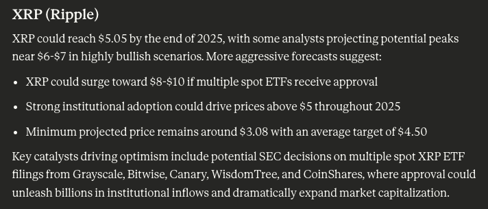 مدلهای پیشبینی کلاد نشان میدهد XRP ریپل ممکن است رشد قابل توجهی را تجربه کند و потенциальاً تا پایان سال به محدوده ۳ تا ۱۰ دلار برسد – تقریباً چهار برابر قیمت فعلی حدود ۲.۲۸ دلار.