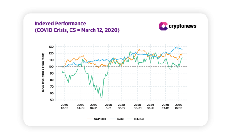 طلا پایدارترین دارایی بود که در طول هر بحران ارزش خود را حفظ کرد و با نوسان بسیار کم، سریع‌ترین بازیابی را داشت. سهام به شدت سقوط کرد اما به سرعت بازگشت که این امر با حمایت دولت و بهبود اعتماد پس از پایان هراس ممکن شد. بیت‌کوین یک پناهگاه امن واقعی نبود و در بحران‌ها به شدت افت کرد، اما بعداً بیشترین بازگشت را ارائه داد – به جز در سال ۲۰۲۲ که سقوط های Terra، Voyager و FTX بازیابی آن را کند کرد. در کل، طلا در بحران‌ها بهترین محافظت را دارد، سهام با حمایت بازیابی می‌شود و بیت‌کوین پس از آرامش بازارها قوی‌ترین عملکرد را نشان می‌دهد.
