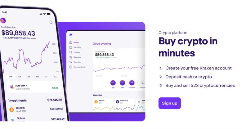کرکن یک صرافی پیشرو در حوزه کریپتو است که به ۱۵ میلیون کاربر با حجم معاملات فصلی بیش از ۲۰۰ میلیارد دلار خدمات ارائه میدهد. کاربران میتوانند در عرض چند دقیقه از طریق واریز نقدی یا کریپتو، ارز دیجیتال خریداری کنند و همچنین از طریق سهاگذاری (staking) روی کوینهای واجد شرایط، پاداش دریافت کنند – مثلاً تا ۶٪ سود سالانه (APR) برای کاردانو (Cardano) و تا ۳٪ سود سالانه برای اتریوم (Ethereum).