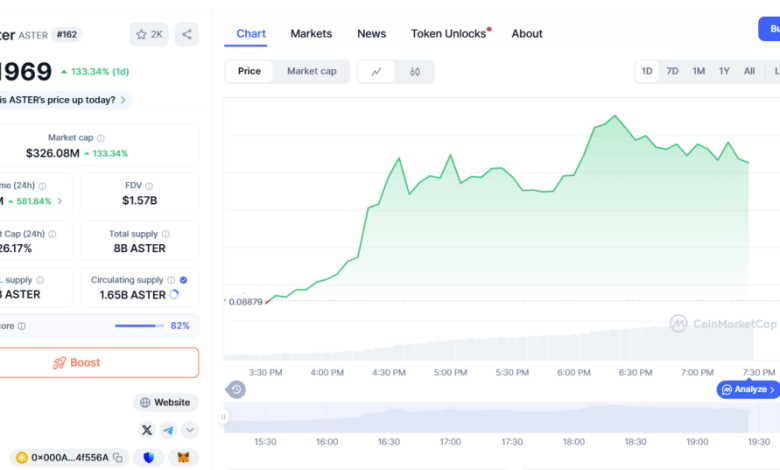 تنها در شش ساعت پس از عرضه، توکن ASTER با رسیدن به ارزش بازار بیش از 300 میلیون دلار، از قیمت اولیه 0.08 دلار به اوج 0.2181 دلار صعود کرد و برای سرمایهگذاران بازدهی بیش از 130% را در اولین روز معاملات به ارمغان آورد.