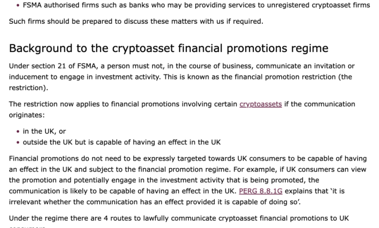 از زمان اجرای رژیم تبلیغات مالی، FCA بارها به صرافیهایی از جمله بایننس، کوکوین و OKX در مورد بازاریابی غیرمجاز هشدار داده است.
