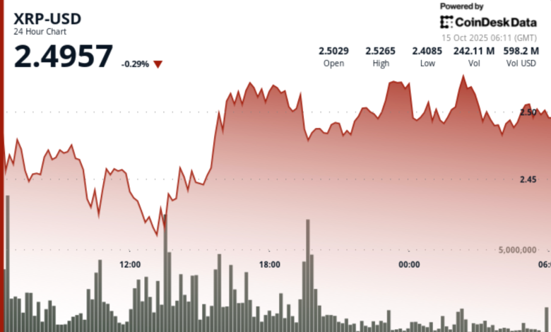 فروش گسترده در بازارهای مشتقات، قیمت XRP را کاهش داد تا اینکه خریداران از منطقه ۲.۴۰ دلاری دفاع کردند و یک آزمون مجدد کلیدی برای سطح حمایت قبل از آغاز معاملات آسیا شکل گرفت.